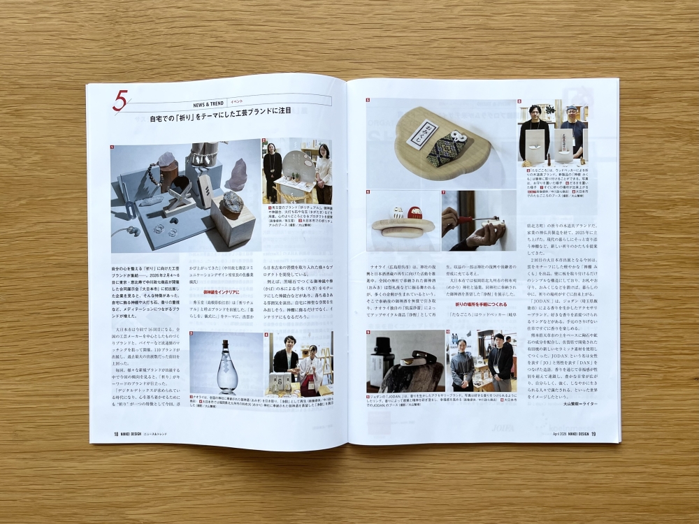2026年2月に参加した展示会「大日本市」のレポートにて「たなごころ」の新作の神棚みくもを紹介していただきました。