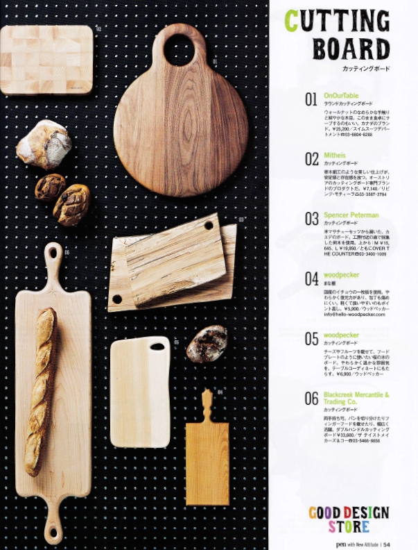 "いちょうの木のまな板 4中"、"桜のカッティングボード 小"を紹介していただきました。