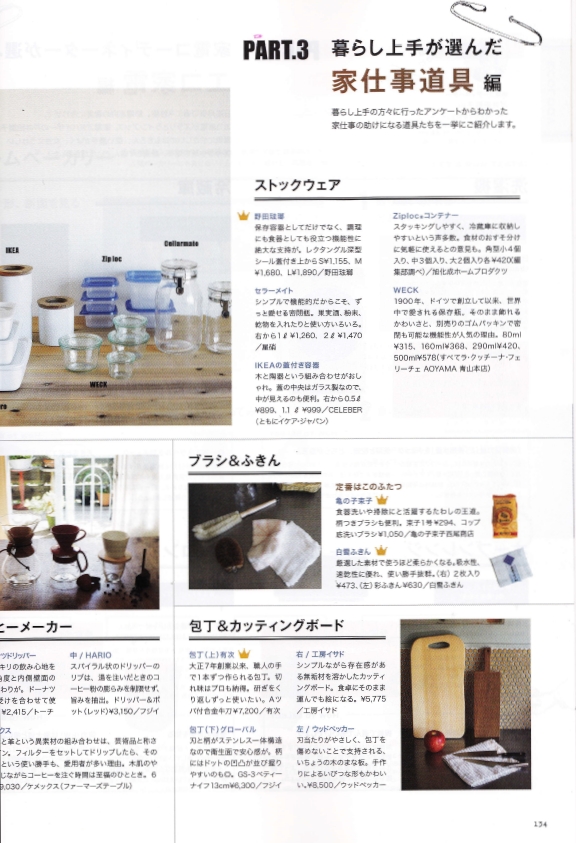 "暮らし上手が選んだ家仕事道具編"(P134)にて