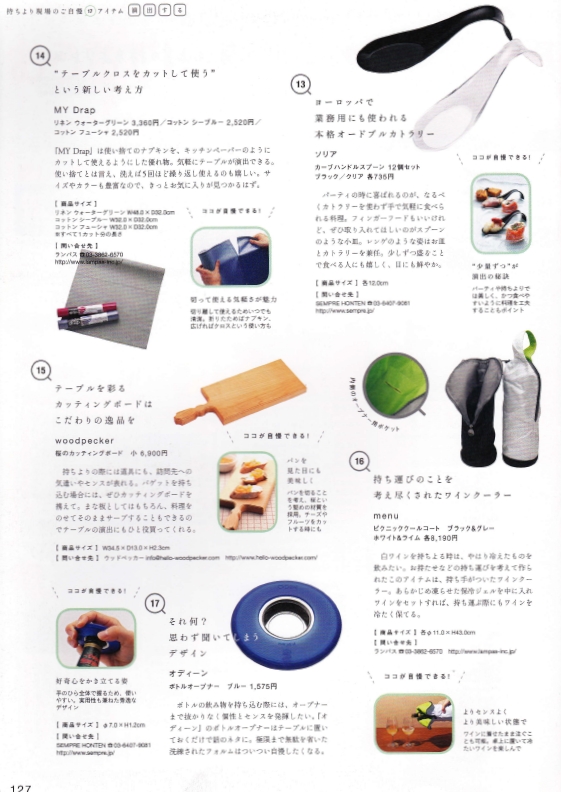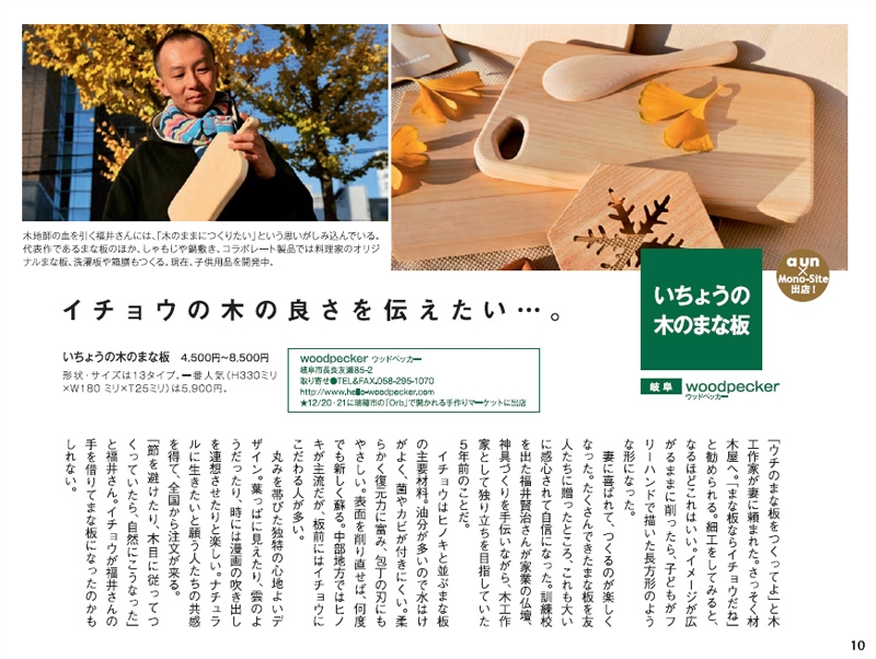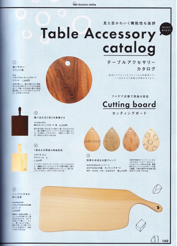 “テーブルウエアカタログ”(P73)にて“いちょうの木のまな板5L”を紹介していただきました。
