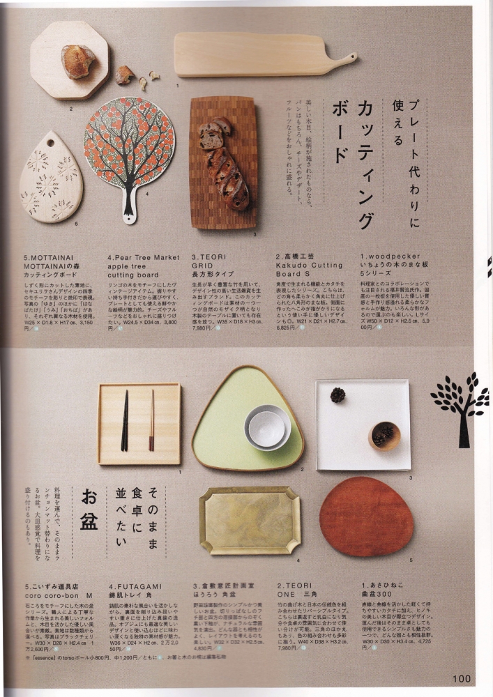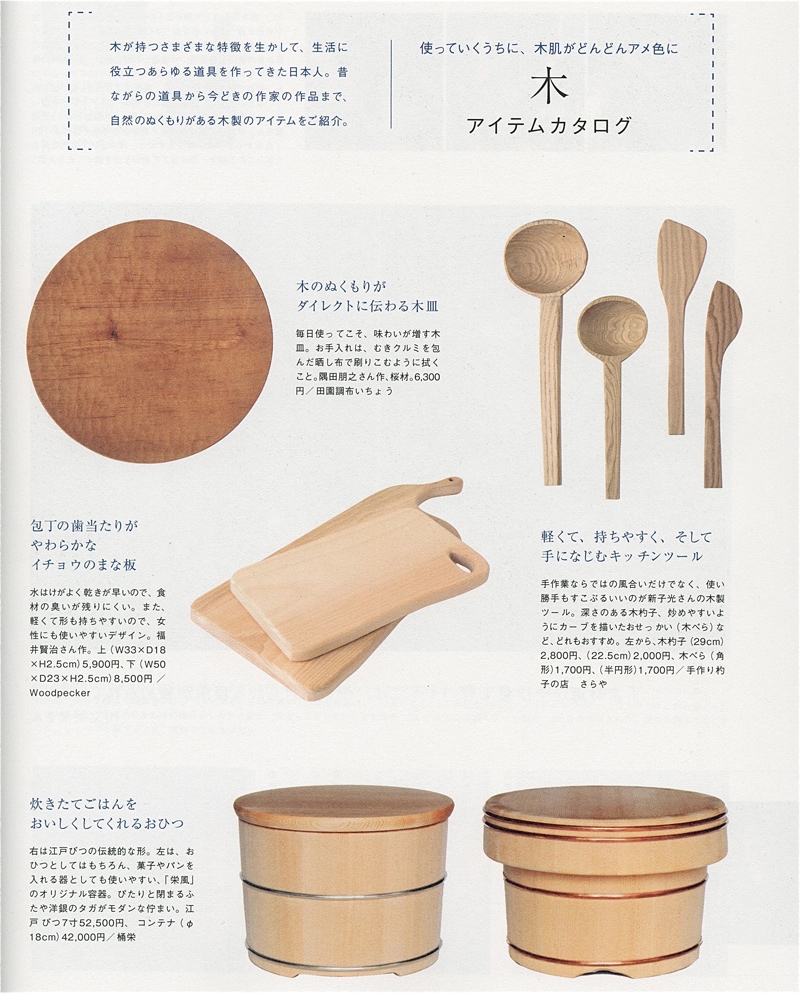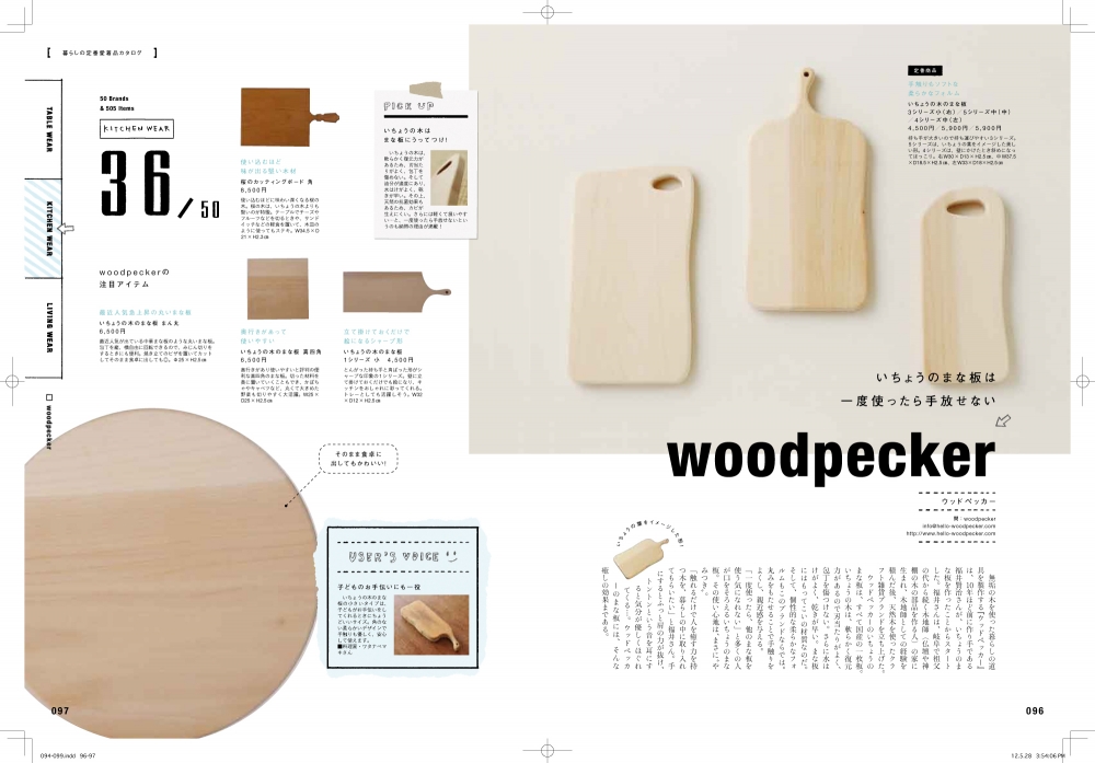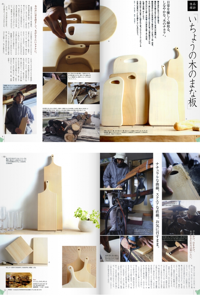 “暮らしの定番愛着品カタログ” (P96~P97)にて“いちょうの木のまな板””桜のカッティングボード”を