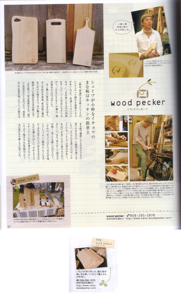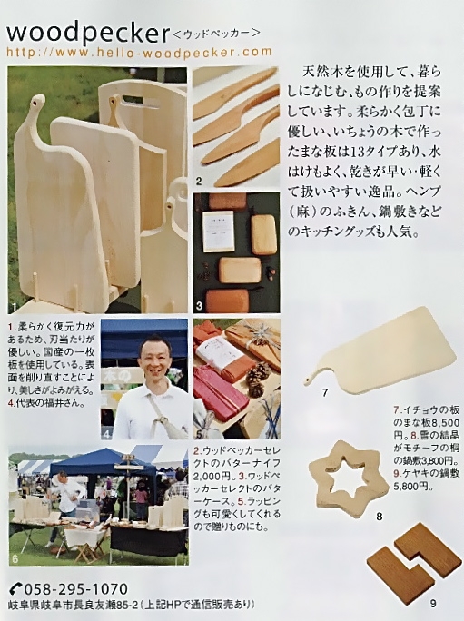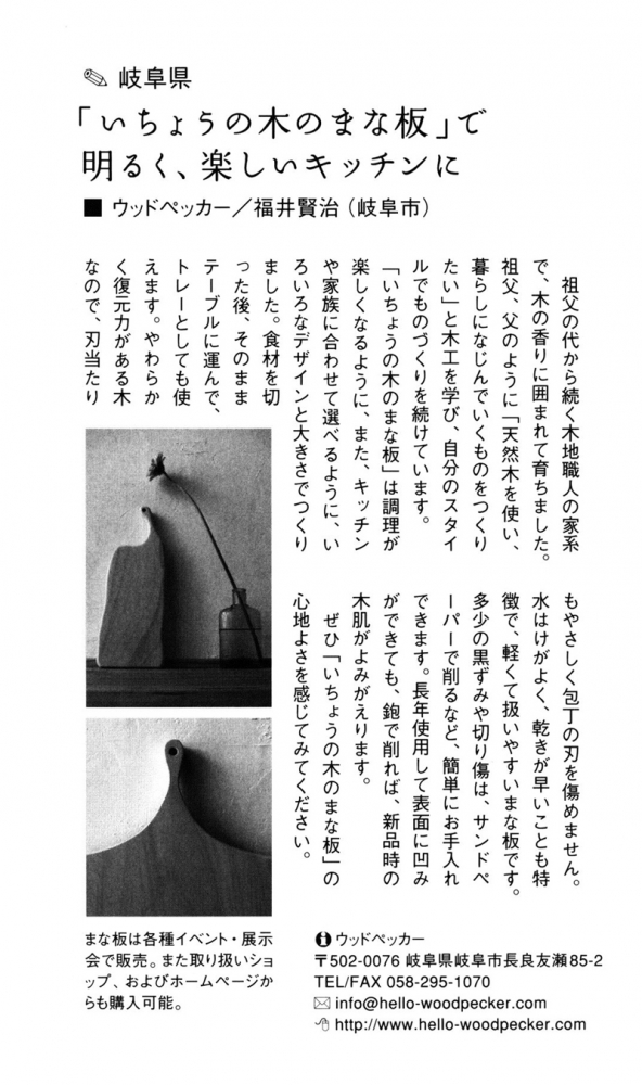 "自然生活雑貨のススメ(P94)"にて"いちょうの木のまな板"を紹介していただきました。