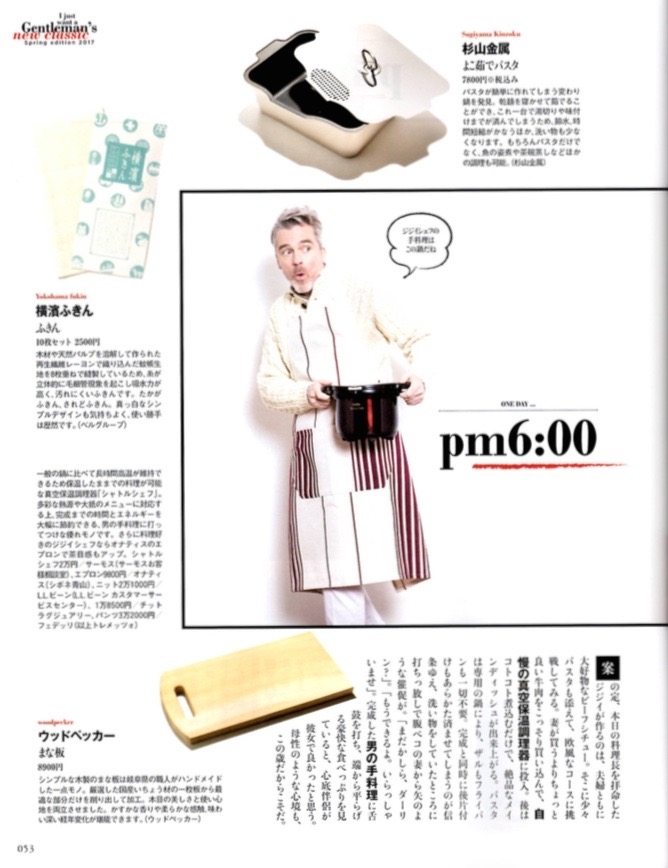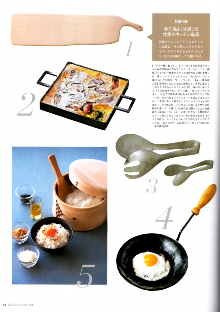 「器とキッチン道具もトレンドであそぼう!」(P93)にて「いちょうの木のまな板 ロング」をご紹介いただきました。