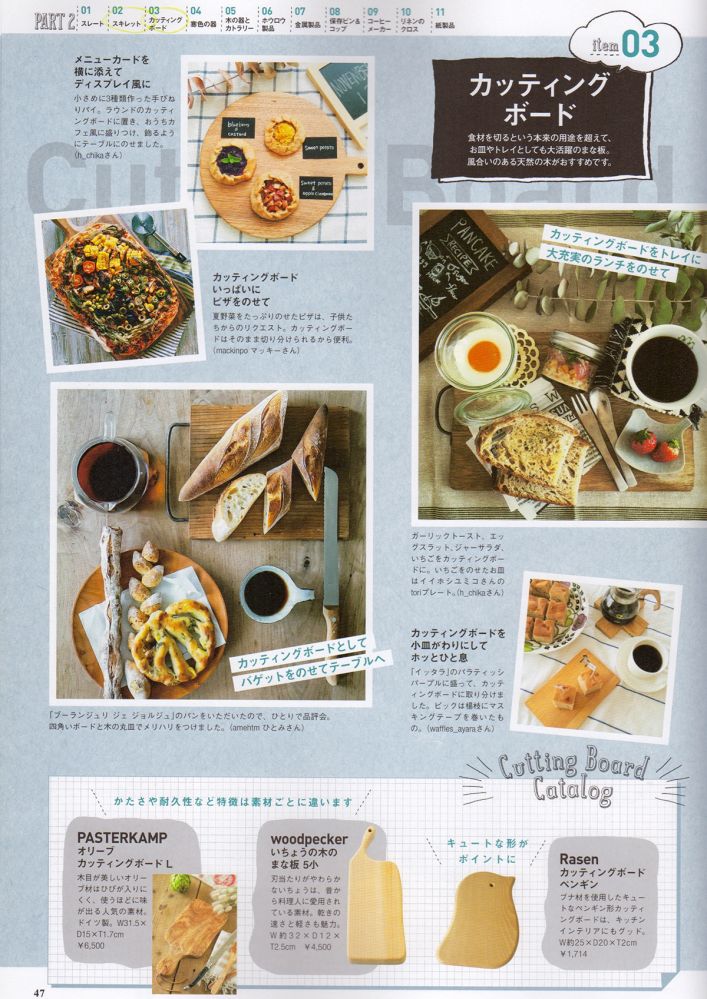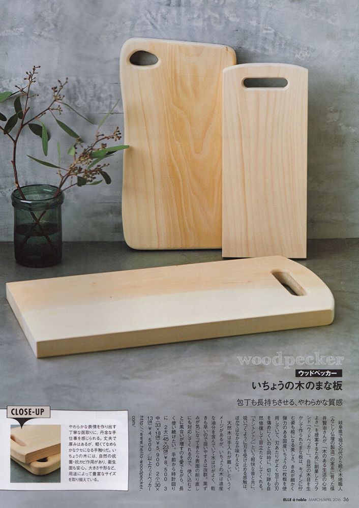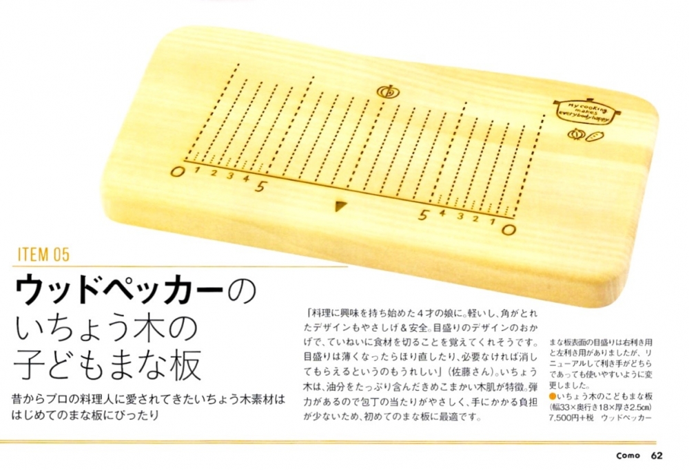 “おしゃれテーブルをつくるアイテム別ヒント集 ”(P47)にて“いちょうの木のまな板 ”をご紹介いただきました。