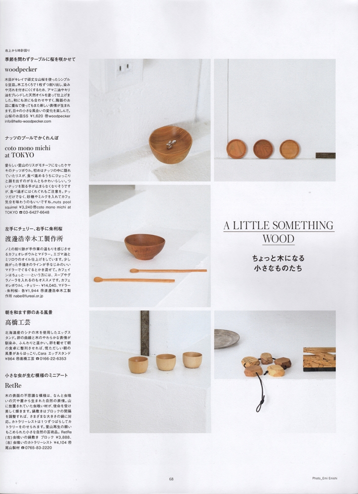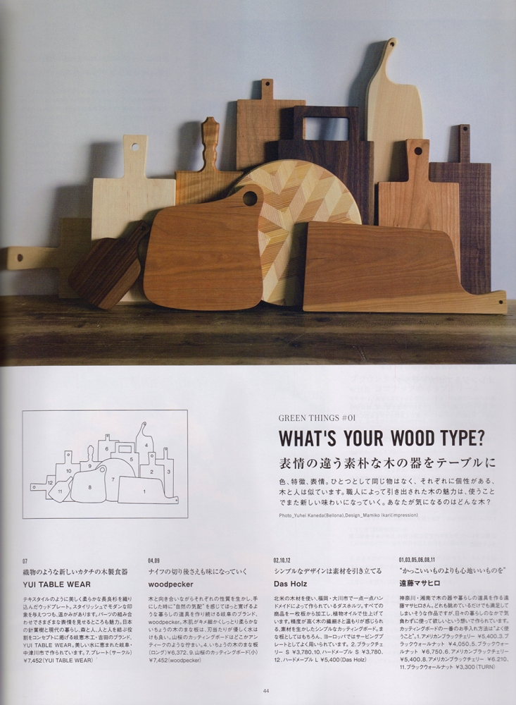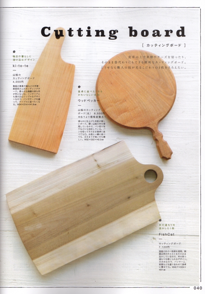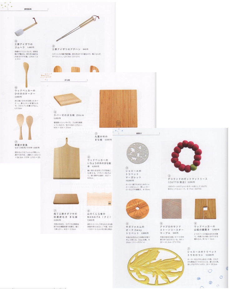 “いちょうの木のまな板”(P109)“ひのきのターナー”(P115)“山桜の鍋敷き”(P87)をご紹介いただきました。