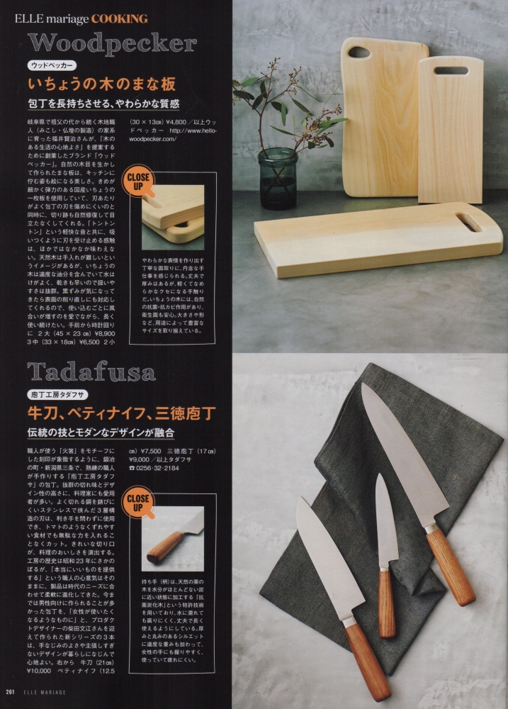 “キッチン道具は永遠の名品を手にいれて!”(P261)にて“いちょうの木のまな板”をご紹介いただきました。