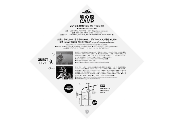 10/15(土) "響の森CAMP 2016” (岐阜県郡上市)に出店します。